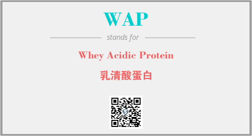 上述内容是“Whey Acidic Protein”作为“WAP”的缩写,解释为“乳清酸蛋白”时的信息,以及英文缩略词WAP所代表的英文单词,其对应的中文拼音、详细解释以及在英文中的流行度和相关分类、应用领域及应用示例等。