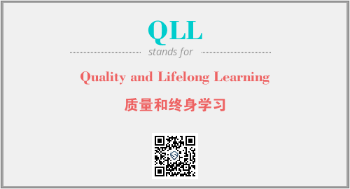 上述内容是“Quality and Lifelong Learning”作为“QLL”的缩写,解释为“质量和终身学习”时的信息,以及英文缩略词QLL所代表的英文单词,其对应的中文拼音、详细解释以及在英文中的流行度和相关分类、应用领域及应用示例等。