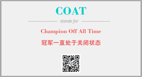 上述内容是“Champion Off All Time”作为“COAT”的缩写,解释为“冠军一直处于关闭状态”时的信息,以及英文缩略词COAT所代表的英文单词,其对应的中文拼音、详细解释以及在英文中的流行度和相关分类、应用领域及应用示例等。