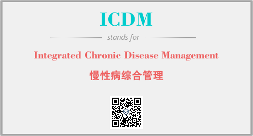 英文缩略词“ICDM”经常作为“Integrated Chronic Disease Management”的英文缩写来使用,中文表示:“慢性病综合管理”。本文将详细介绍英文缩写词ICDM所代表英文单词,其对应的中文拼音、详细解释以及在英语中的流行度。此外,还有关于缩略词ICDM的分类、应用领域及相关应用示例等。