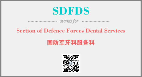 上述内容是“Section of Defence Forces Dental Services”作为“SDFDS”的缩写,解释为“国防军牙科服务科”时的信息,以及英文缩略词SDFDS所代表的英文单词,其对应的中文拼音、详细解释以及在英文中的流行度和相关分类、应用领域及应用示例等。