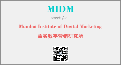 上述内容是“Mumbai Institute of Digital Marketing”作为“MIDM”的缩写,解释为“孟买数字营销研究所”时的信息,以及英文缩略词MIDM所代表的英文单词,其对应的中文拼音、详细解释以及在英文中的流行度和相关分类、应用领域及应用示例等。