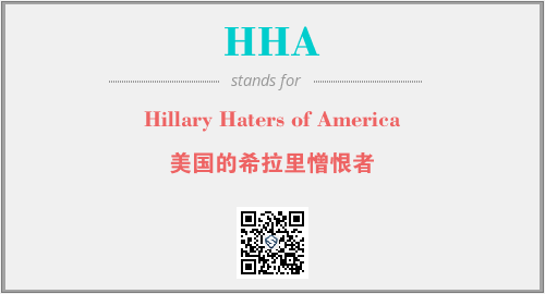 以上为Hillary Haters of America英文缩略词HHA的中文解释,以及该英文缩写在英语的流行度、分类和应用领域方面的信息。