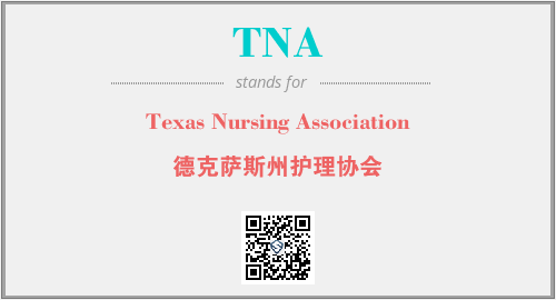 英文缩略词“TNA”经常作为“Texas Nursing Association”的英文缩写来使用,中文表示:“德克萨斯州护理协会”。本文将详细介绍英文缩写词TNA所代表英文单词,其对应的中文拼音、详细解释以及在英语中的流行度。此外,还有关于缩略词TNA的分类、应用领域及相关应用示例等。