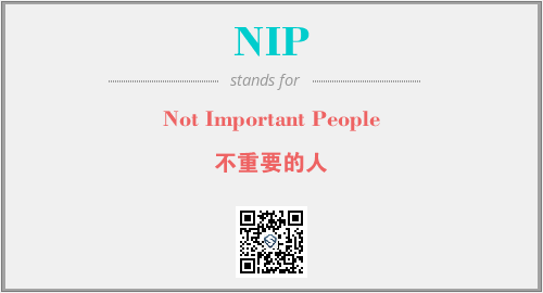 以上为Not Important People英文缩略词NIP的中文解释,以及该英文缩写在英语的流行度、分类和应用领域方面的信息。