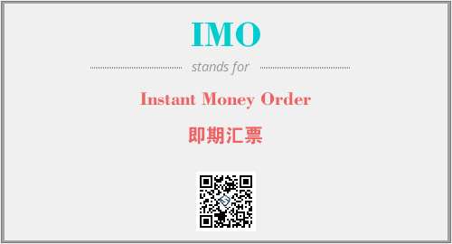 英文缩略词“IMO”经常作为“Instant Money Order”的英文缩写来使用,中文表示:“即期汇票”。本文将详细介绍英文缩写词IMO所代表英文单词,其对应的中文拼音、详细解释以及在英语中的流行度。此外,还有关于缩略词IMO的分类、应用领域及相关应用示例等。
