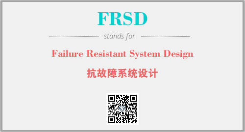 上述内容是“Failure Resistant System Design”作为“FRSD”的缩写,解释为“抗故障系统设计”时的信息,以及英文缩略词FRSD所代表的英文单词,其对应的中文拼音、详细解释以及在英文中的流行度和相关分类、应用领域及应用示例等。