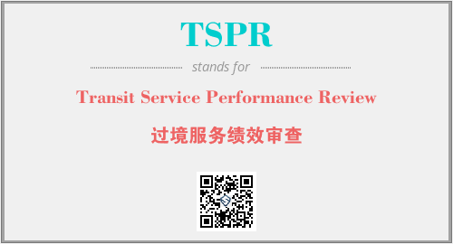 上述内容是“Transit Service Performance Review”作为“TSPR”的缩写,解释为“过境服务绩效审查”时的信息,以及英文缩略词TSPR所代表的英文单词,其对应的中文拼音、详细解释以及在英文中的流行度和相关分类、应用领域及应用示例等。