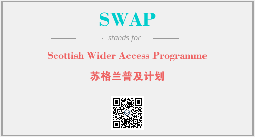 英文缩略词“SWAP”经常作为“Scottish Wider Access Programme”的英文缩写来使用,中文表示:“苏格兰普及计划”。本文将详细介绍英文缩写词SWAP所代表英文单词,其对应的中文拼音、详细解释以及在英语中的流行度。此外,还有关于缩略词SWAP的分类、应用领域及相关应用示例等。