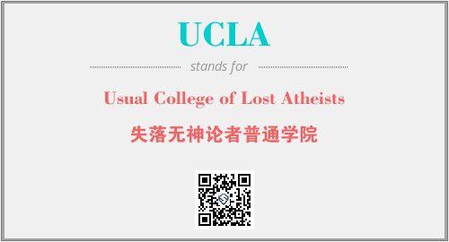 以上为Usual College of Lost Atheists英文缩略词UCLA的中文解释,以及该英文缩写在英语的流行度、分类和应用领域方面的信息。