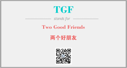 以上为Two Good Friends英文缩略词TGF的中文解释,以及该英文缩写在英语的流行度、分类和应用领域方面的信息。