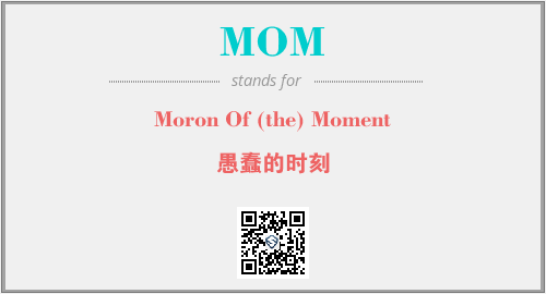 英文缩略词“MOM”经常作为“Moron Of (the) Moment”的英文缩写来使用,中文表示:“愚蠢的时刻”。本文将详细介绍英文缩写词MOM所代表英文单词,其对应的中文拼音、详细解释以及在英语中的流行度。此外,还有关于缩略词MOM的分类、应用领域及相关应用示例等。