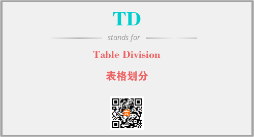 上述内容是“Table Division”作为“TD”的缩写,解释为“表格划分”时的信息,以及英文缩略词TD所代表的英文单词,其对应的中文拼音、详细解释以及在英文中的流行度和相关分类、应用领域及应用示例等。