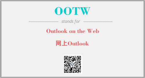 上述内容是“Outlook on the Web”作为“OOTW”的缩写,解释为“网上Outlook”时的信息,以及英文缩略词OOTW所代表的英文单词,其对应的中文拼音、详细解释以及在英文中的流行度和相关分类、应用领域及应用示例等。