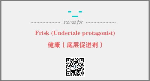 上述内容是“Frisk (Undertale protagonist)”作为“-_-”的缩写,解释为“健康(底层促进剂)”时的信息,以及英文缩略词-_-所代表的英文单词,其对应的中文拼音、详细解释以及在英文中的流行度和相关分类、应用领域及应用示例等。