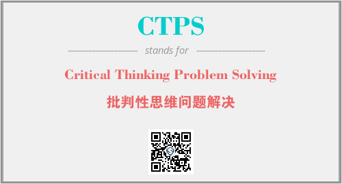 英文缩略词“CTPS”经常作为“Critical Thinking Problem Solving”的英文缩写来使用,中文表示:“批判性思维问题解决”。本文将详细介绍英文缩写词CTPS所代表英文单词,其对应的中文拼音、详细解释以及在英语中的流行度。此外,还有关于缩略词CTPS的分类、应用领域及相关应用示例等。