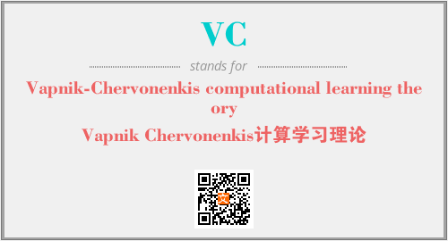 上述内容是“Vapnik-Chervonenkis computational learning theory”作为“VC”的缩写,解释为“Vapnik Chervonenkis计算学习理论”时的信息,以及英文缩略词VC所代表的英文单词,其对应的中文拼音、详细解释以及在英文中的流行度和相关分类、应用领域及应用示例等。