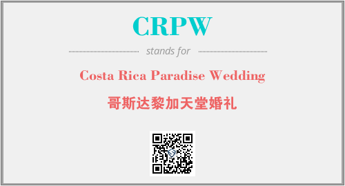 英文缩略词“CRPW”经常作为“Costa Rica Paradise Wedding”的英文缩写来使用,中文表示:“哥斯达黎加天堂婚礼”。本文将详细介绍英文缩写词CRPW所代表英文单词,其对应的中文拼音、详细解释以及在英语中的流行度。此外,还有关于缩略词CRPW的分类、应用领域及相关应用示例等。
