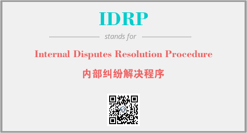 上述内容是“Internal Disputes Resolution Procedure”作为“IDRP”的缩写,解释为“内部纠纷解决程序”时的信息,以及英文缩略词IDRP所代表的英文单词,其对应的中文拼音、详细解释以及在英文中的流行度和相关分类、应用领域及应用示例等。