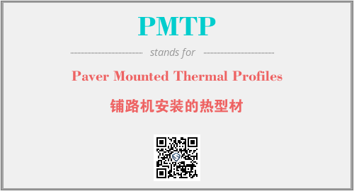 英文缩略词“PMTP”经常作为“Paver Mounted Thermal Profiles”的英文缩写来使用,中文表示:“铺路机安装的热型材”。本文将详细介绍英文缩写词PMTP所代表英文单词,其对应的中文拼音、详细解释以及在英语中的流行度。此外,还有关于缩略词PMTP的分类、应用领域及相关应用示例等。