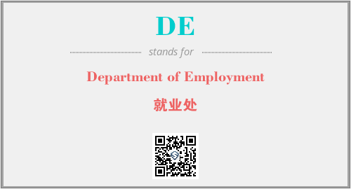 上述内容是“Department of Employment”作为“DE”的缩写,解释为“就业处”时的信息,以及英文缩略词DE所代表的英文单词,其对应的中文拼音、详细解释以及在英文中的流行度和相关分类、应用领域及应用示例等。
