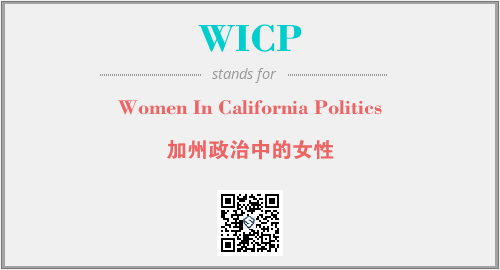 上述内容是“Women In California Politics”作为“WICP”的缩写,解释为“加州政治中的女性”时的信息,以及英文缩略词WICP所代表的英文单词,其对应的中文拼音、详细解释以及在英文中的流行度和相关分类、应用领域及应用示例等。
