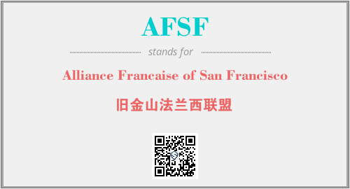 以上为Alliance Francaise of San Francisco英文缩略词AFSF的中文解释,以及该英文缩写在英语的流行度、分类和应用领域方面的信息。