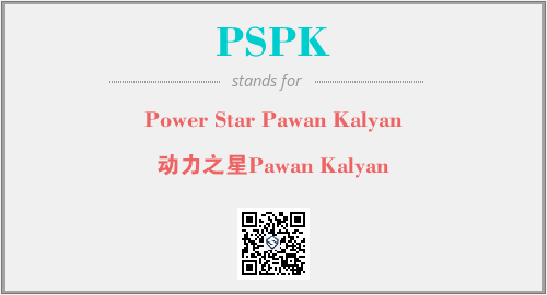 上述内容是“Power Star Pawan Kalyan”作为“PSPK”的缩写,解释为“动力之星Pawan Kalyan”时的信息,以及英文缩略词PSPK所代表的英文单词,其对应的中文拼音、详细解释以及在英文中的流行度和相关分类、应用领域及应用示例等。