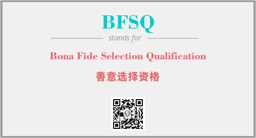 上述内容是“Bona Fide Selection Qualification”作为“BFSQ”的缩写,解释为“善意选择资格”时的信息,以及英文缩略词BFSQ所代表的英文单词,其对应的中文拼音、详细解释以及在英文中的流行度和相关分类、应用领域及应用示例等。