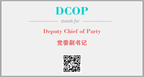 上述内容是“Deputy Chief of Party”作为“DCOP”的缩写,解释为“党委副书记”时的信息,以及英文缩略词DCOP所代表的英文单词,其对应的中文拼音、详细解释以及在英文中的流行度和相关分类、应用领域及应用示例等。