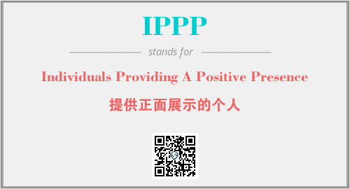 英文缩略词“IPPP”经常作为“Individuals Providing A Positive Presence”的英文缩写来使用,中文表示:“提供正面展示的个人”。本文将详细介绍英文缩写词IPPP所代表英文单词,其对应的中文拼音、详细解释以及在英语中的流行度。此外,还有关于缩略词IPPP的分类、应用领域及相关应用示例等。