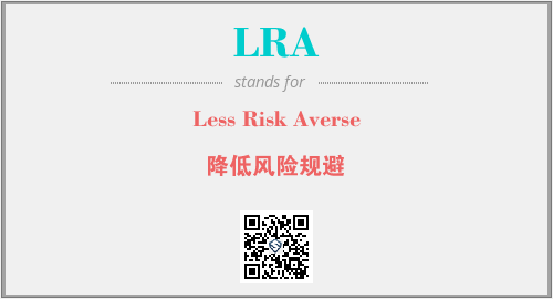 上述内容是“Less Risk Averse”作为“LRA”的缩写,解释为“降低风险规避”时的信息,以及英文缩略词LRA所代表的英文单词,其对应的中文拼音、详细解释以及在英文中的流行度和相关分类、应用领域及应用示例等。
