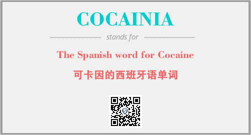 英文缩略词“COCAINIA”经常作为“The Spanish word for Cocaine”的英文缩写来使用,中文表示:“可卡因的西班牙语单词”。本文将详细介绍英文缩写词COCAINIA所代表英文单词,其对应的中文拼音、详细解释以及在英语中的流行度。此外,还有关于缩略词COCAINIA的分类、应用领域及相关应用示例等。