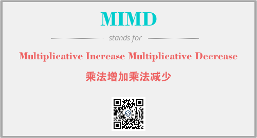 上述内容是“Multiplicative Increase Multiplicative Decrease”作为“MIMD”的缩写,解释为“乘法增加乘法减少”时的信息,以及英文缩略词MIMD所代表的英文单词,其对应的中文拼音、详细解释以及在英文中的流行度和相关分类、应用领域及应用示例等。