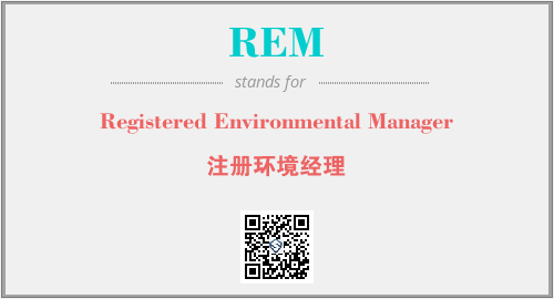 英文缩略词“REM”经常作为“Registered Environmental Manager”的英文缩写来使用,中文表示:“注册环境经理”。本文将详细介绍英文缩写词REM所代表英文单词,其对应的中文拼音、详细解释以及在英语中的流行度。此外,还有关于缩略词REM的分类、应用领域及相关应用示例等。