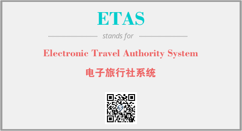 英文缩略词“ETAS”经常作为“Electronic Travel Authority System”的英文缩写来使用,中文表示:“电子旅行社系统”。本文将详细介绍英文缩写词ETAS所代表英文单词,其对应的中文拼音、详细解释以及在英语中的流行度。此外,还有关于缩略词ETAS的分类、应用领域及相关应用示例等。