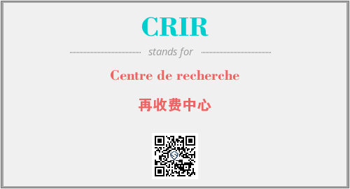 上述内容是“Centre de recherche”作为“CRIR”的缩写,解释为“再收费中心”时的信息,以及英文缩略词CRIR所代表的英文单词,其对应的中文拼音、详细解释以及在英文中的流行度和相关分类、应用领域及应用示例等。