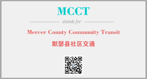 英文缩略词“MCCT”经常作为“Mercer County Community Transit”的英文缩写来使用,中文表示:“默瑟县社区交通”。本文将详细介绍英文缩写词MCCT所代表英文单词,其对应的中文拼音、详细解释以及在英语中的流行度。此外,还有关于缩略词MCCT的分类、应用领域及相关应用示例等。