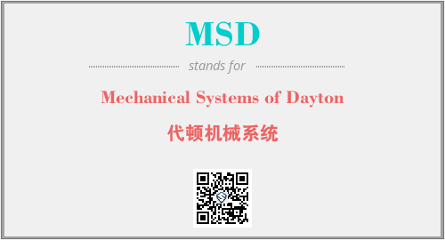 上述内容是“Mechanical Systems of Dayton”作为“MSD”的缩写,解释为“代顿机械系统”时的信息,以及英文缩略词MSD所代表的英文单词,其对应的中文拼音、详细解释以及在英文中的流行度和相关分类、应用领域及应用示例等。