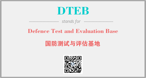 英文缩略词“DTEB”经常作为“Defence Test and Evaluation Base”的英文缩写来使用,中文表示:“国防测试与评估基地”。本文将详细介绍英文缩写词DTEB所代表英文单词,其对应的中文拼音、详细解释以及在英语中的流行度。此外,还有关于缩略词DTEB的分类、应用领域及相关应用示例等。