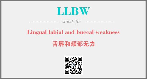 上述内容是“Lingual labial and buccal weakness”作为“LLBW”的缩写,解释为“舌唇和颊部无力”时的信息,以及英文缩略词LLBW所代表的英文单词,其对应的中文拼音、详细解释以及在英文中的流行度和相关分类、应用领域及应用示例等。