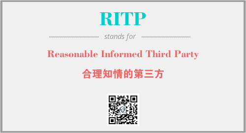 上述内容是“Reasonable Informed Third Party”作为“RITP”的缩写,解释为“合理知情的第三方”时的信息,以及英文缩略词RITP所代表的英文单词,其对应的中文拼音、详细解释以及在英文中的流行度和相关分类、应用领域及应用示例等。