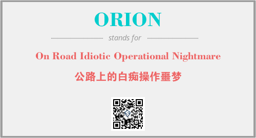 以上为On Road Idiotic Operational Nightmare英文缩略词ORION的中文解释,以及该英文缩写在英语的流行度、分类和应用领域方面的信息。