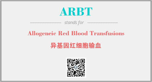 英文缩略词“ARBT”经常作为“Allogeneic Red Blood Transfusions”的英文缩写来使用,中文表示:“异基因红细胞输血”。本文将详细介绍英文缩写词ARBT所代表英文单词,其对应的中文拼音、详细解释以及在英语中的流行度。此外,还有关于缩略词ARBT的分类、应用领域及相关应用示例等。