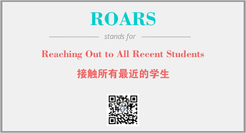 上述内容是“Reaching Out to All Recent Students”作为“ROARS”的缩写,解释为“接触所有最近的学生”时的信息,以及英文缩略词ROARS所代表的英文单词,其对应的中文拼音、详细解释以及在英文中的流行度和相关分类、应用领域及应用示例等。