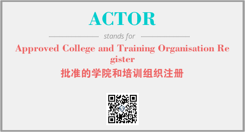 上述内容是“Approved College and Training Organisation Register”作为“ACTOR”的缩写,解释为“批准的学院和培训组织注册”时的信息,以及英文缩略词ACTOR所代表的英文单词,其对应的中文拼音、详细解释以及在英文中的流行度和相关分类、应用领域及应用示例等。