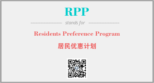 上述内容是“Residents Preference Program”作为“RPP”的缩写,解释为“居民优惠计划”时的信息,以及英文缩略词RPP所代表的英文单词,其对应的中文拼音、详细解释以及在英文中的流行度和相关分类、应用领域及应用示例等。