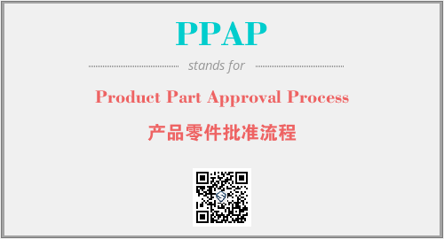 英文缩略词“PPAP”经常作为“Product Part Approval Process”的英文缩写来使用,中文表示:“产品零件批准流程”。本文将详细介绍英文缩写词PPAP所代表英文单词,其对应的中文拼音、详细解释以及在英语中的流行度。此外,还有关于缩略词PPAP的分类、应用领域及相关应用示例等。