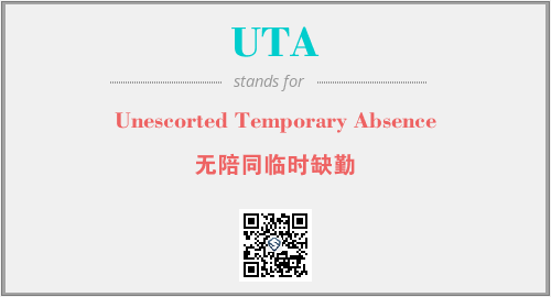 上述内容是“Unescorted Temporary Absence”作为“UTA”的缩写,解释为“无陪同临时缺勤”时的信息,以及英文缩略词UTA所代表的英文单词,其对应的中文拼音、详细解释以及在英文中的流行度和相关分类、应用领域及应用示例等。
