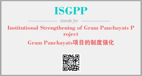 上述内容是“Institutional Strengthening of Gram Panchayats Project”作为“ISGPP”的缩写,解释为“Gram Panchayats项目的制度强化”时的信息,以及英文缩略词ISGPP所代表的英文单词,其对应的中文拼音、详细解释以及在英文中的流行度和相关分类、应用领域及应用示例等。
